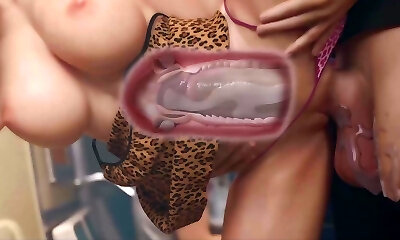 Busty seductive teen gets both her fuck holes annihilated by two tremendous BBCs. 3D video