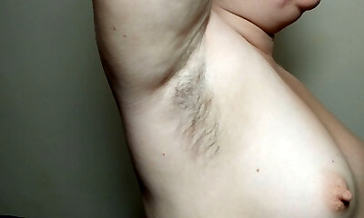 Ellie showcases her hairy armpits and plays with them