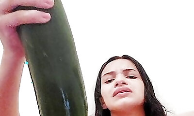 Ginormous cucumber for cute Megan's pulsating vagina