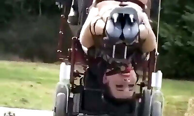 Blonde honey with pumps on her fun bags gets toyed by a machine