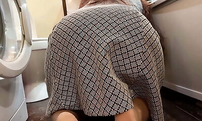 Big juicy hefty bum busty white girl hot milf maid in mini dress no panties cleaning palace and flashing pussy close - BBW SSBBW