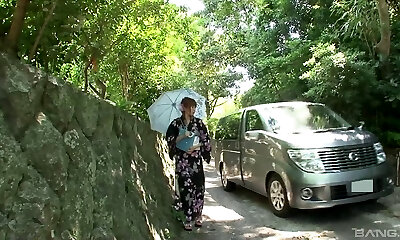 chica kimono en una caravana chupa la polla y se deja follar el juguete