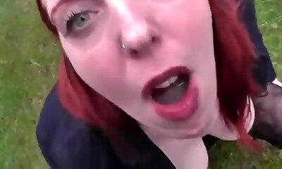 cougar alemana pelirroja trabaja esa gran polla con su culo y su garganta en el parque